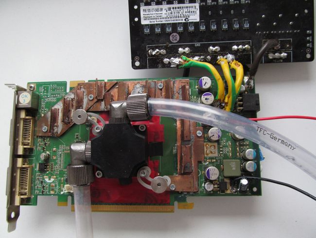 Along the way, Ukrainian enthusiast overclocked seriously modified GeForce 7600 GT to 918/1900 MHz with liquid cooling system, taking with it the first place in 3DMark2001 SE with a score 74,013 points. Core i7-4770K processor was overclocked to 5098 MHz.