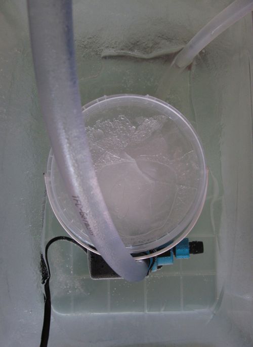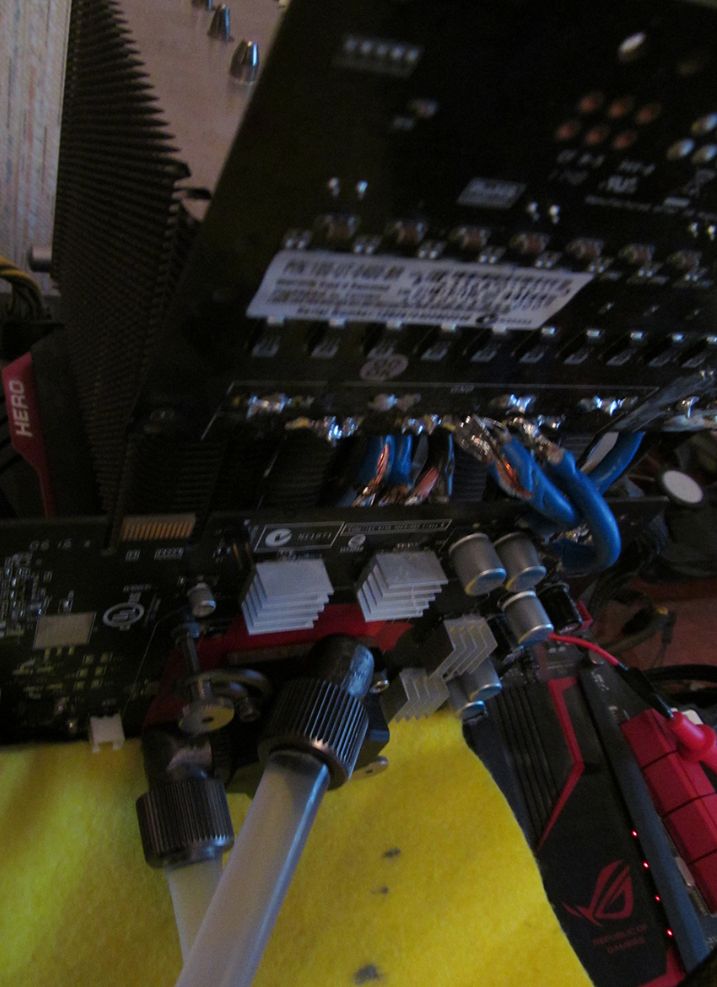 And here is the container of ice water, the use of which in one degree or another contributed to overclock to 932/1800 MHz. The CPU Core i7-4770K in this case was air cooled, it was overclocked to 4998 MHz.
