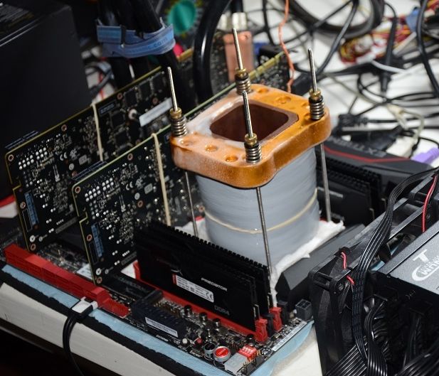 A pair of GeForce GTX 1080 showed good results under cold water (2016-10-05)