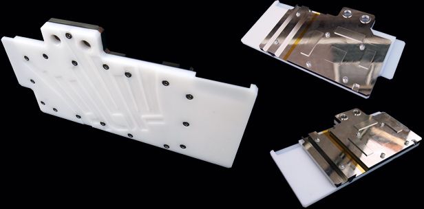 Waterblock sole contact with all critical components, and transparent cover extends over the entire length of the circuit board, allowing to contemplate the power components, two Eight-pin power connector and the inside of the water block.