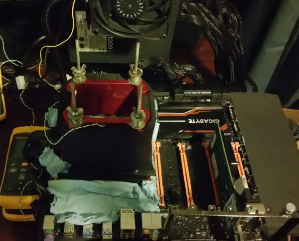 Photo captures the process of preparing for another record, based on the Core i7-5960X. The increasingly popular test GPUPI 1B system ranked first among all eight cores with the result 2 minutes 19.136 seconds. The CPU in this case was overclocked to 5923 MHz. Related Products :