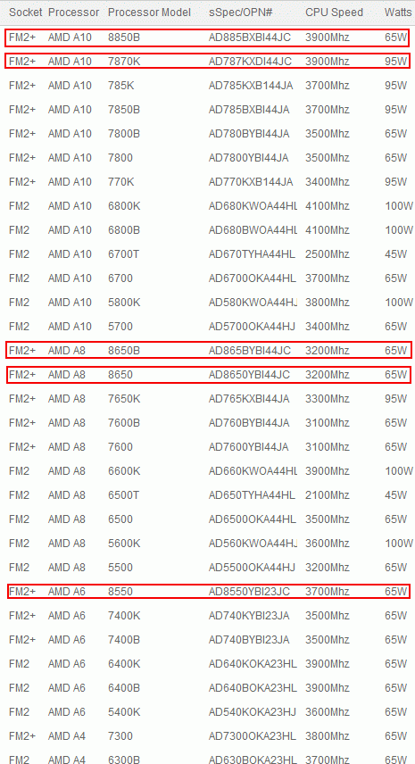 If A8-8650 (3.2 GHz, 65 W) and A6-8550 (3.7 GHz, 65 W) is designed for general use, the processor A10-8850B (3.9 GHz, 65 W) and A8-8650B (3.2 GHz, 65 W) awaits business  computers.