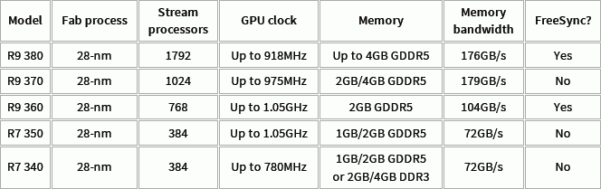 Associates AnandTech disclose the range of new products and their characteristics are even better by sharing graphics solutions in a series Radeon R9 (Tonga, Pitcairn, Bonaire), Radeon R7 (Oland), and Radeon R5 (Oland).