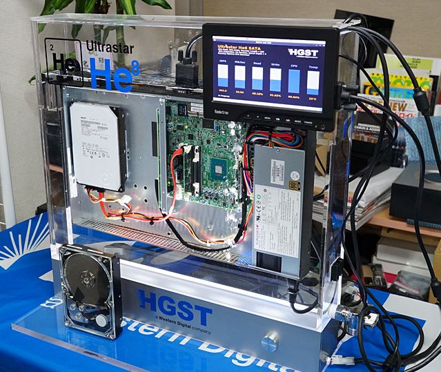 HGST Company, as reported by the Japanese site AKIBA PC Hotline, used aquarium with a dielectric liquid to demonstrate its tightness with helium-filled hard drives. Unlike traditional magnetic storage plates, they do not communicate with the atmosphere, so the focus with immersion becomes possible.