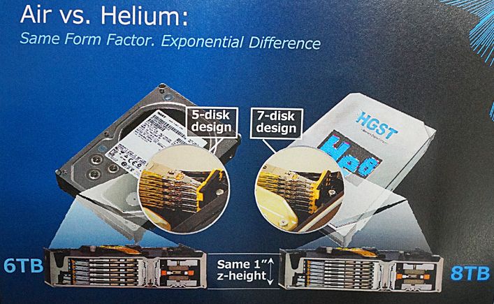 Along the way, the manufacturer said that filling the hard drive enclosure allows helium at equal height accommodate seven platters instead of five. The capacity of the drive is on the increase from six to eight terabytes.