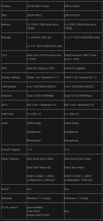 Naew products - ZBOX RI323, ZBOX RI531 and ZBOX RI531 Plus.