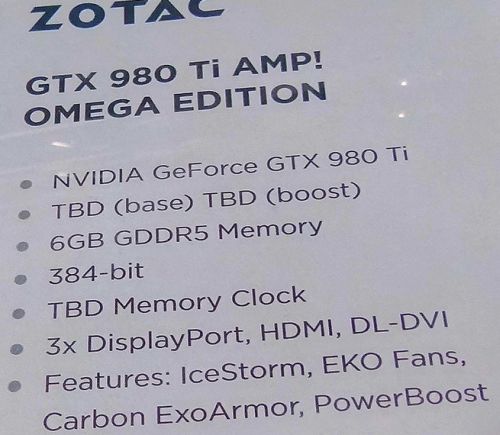 The frequencies of the video card ZOTAC GeForce GTX 980 Ti AMP! OMEGA Edition are not specified, but they will certainly be even higher than the existing champion series AMP! Extreme Edition.