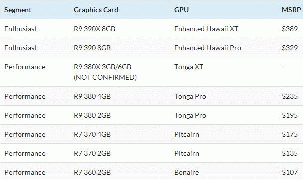 Once again, confirming that the Radeon R9 390X get eight gigabytes of GDDR5 memory , and the ability of these cards to be equipped with alternative cooling systems. Radeon R9 380 from the range of products of this brand is equipped with 4 GB of GDDR5 memory , and the version with 2 GB of memory will be available in a compact format that allows you to install the graphics card into the motherboard type of mini-ITX.
