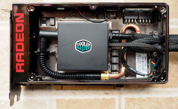 Associate call users to express their imagination in creating alternative casing covers for the cooling system of video card Radeon R9 Fury X reference design. Permanent cover made of aluminum with rubberized coating, can be easily removed after the removal of four screws in the corners of the rectangle.