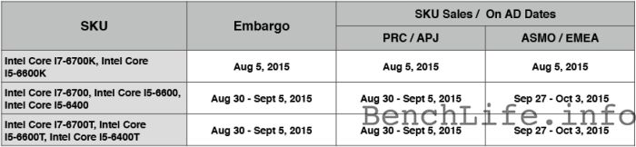 The main part of the desktop processors Skylake-S range, Intel will introduce in the first week of September, but in Europe, Middle East and Africa, they are available only to the end of September, while China and Asia - region (including Japan) will get them immediately after the announcement.