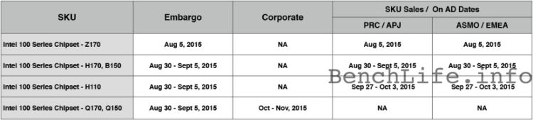 Motherboards based on chipset Intel Z170, which will be required to work with processors in LGA 1151, should go on sale simultaneously with the first processors. Boards based on the chipset Intel H170 and B150 will be available by the end of August, the budget part Intel H110 motherboards will appear by the end of September, and focused on the corporate buyer Intel Q170 and Q150 - in October-November this year. Related Products :