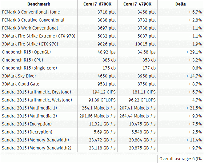 Site TechBang yesterday managed to please the global audience by the results of processor Core i7-6700K, which will head in a month Skylake-S range, offering a new design concept LGA 1151, support for dual-channel memory DDR4 and free multiplier. Default frequency of new items will be 4.0 / 4.2 GHz. The new processor is ready to offer 14-nm manufacturing technology, which theoretically will provide a high overclocking potential, or lower power consumption.