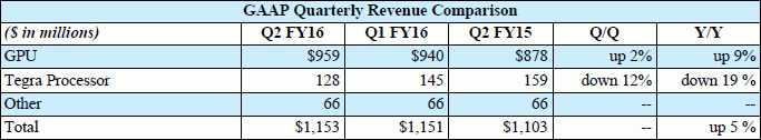 Accelerators Tesla computing and graphics NVIDIA Quadro brought less revenue than a year earlier. Proceeds from sales of Tegra processor has decreased by 19%, and if in the automotive segment (+ 76%) and family units SHIELD it grew up, the side of the tablet and smartphones less and less rely on the use of these processors NVIDIA. As always, $ 66 million. Received under the license agreement with Intel.