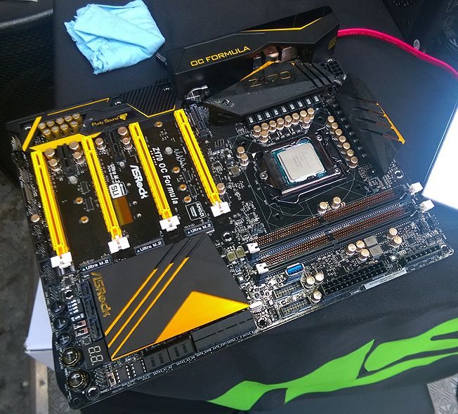 The second observation relates to the Japanese counterparts exposure ASRock booth at the presentation of Skylake Processor. It is in this motherboard manufacturer Core i7-6700K processor was overclocked to 6.3 GHz - the result if not a record, but impressive. As it turned out, specialist ASRock Nick Shih used a modified motherboard Z170 OC Formula - in particular, it remained only two DIMM slots for memory modules, as well as to use experimental UEFI-based firmware that in the future should share their functionality with serial motherboards. Related Products :
