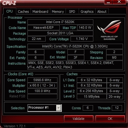 In the hands of the Polish enthusiast Xtreme Addict got a good copy of the Core i7-5820K, while retaining the activity of all core. Actually, this processor conquered frequency of 6.0 GHz. yesterday - in the Cinebench R11.5 test result was obtained 19.66 points