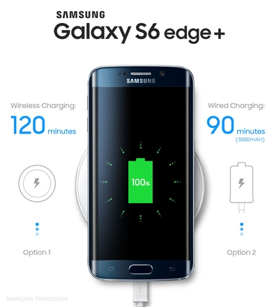 It is reported that the Samsung Galaxy S6 edge + and Galaxy Note 5 received adaptive fast charge (AFC), which significantly reduces battery power through the use of high voltage. Thanks to the new AFC smartphones requires only 90 minutes to fully charge the battery. A wireless charging duration decreased to 120 minutes.