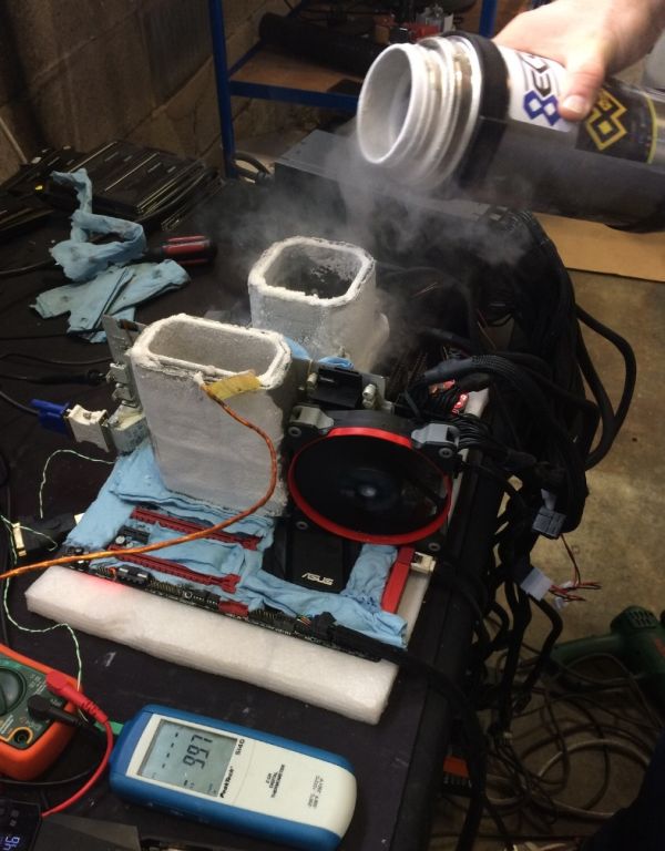 British enthusiast 8 Pack recalled the potential of video card GeForce GTX 980 Asus Ti series STRIX, overclocked it to the 2055/8200 MHz using liquid nitrogen.  The CPU Core i7-5960X cooled in the same way, it worked at a frequency of 5900 MHz.