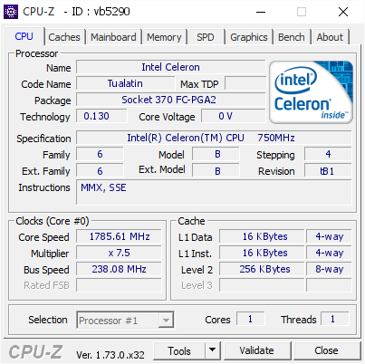 For the experiment was used motherboard Asus TUSL2-C, and Intel Celeron processor generation Tualatin Socket 370 , it was overclocked from 750 to 1756 MHz.  The frequency of the bus at the same time amounted to 238 MHz, and the memory worked synchronously with the processor.