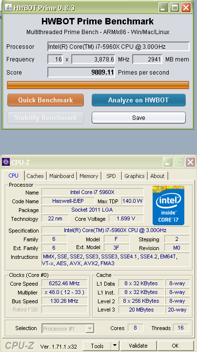 CORE I7-5960X SET A RECORD IN HWBOT PRIME AT A FREQUENCY OF 6.25 GHZ