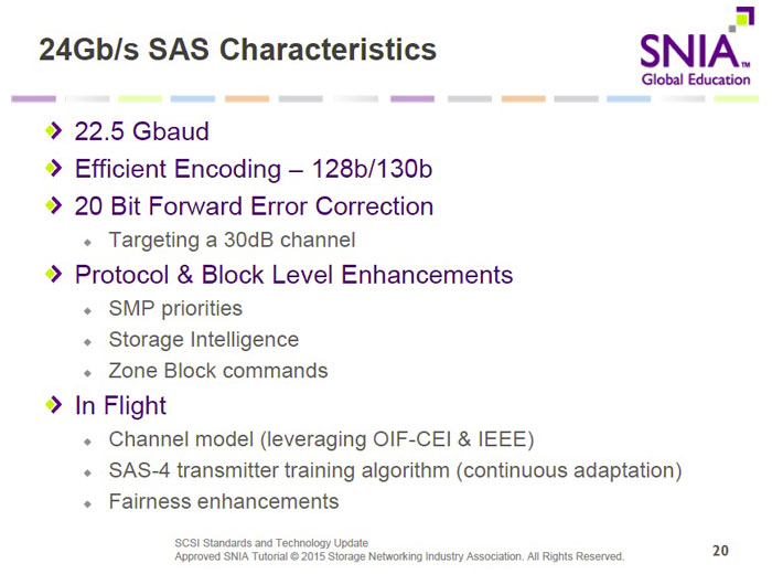 Some time ago there was a conference in the US trade association SCSI, which is being developed under the auspices of interfaces for enhanced storage reliability and performance.  The next development of SAS standard 24 Gb / s.  It is reported that commercial supply drives with the new interface will start in 2018 or 2019.  If we believe the presented slide demonstration the first products from the SAS interface 24 Gb / s is expected in 2017.