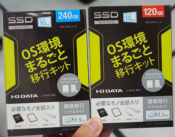 The Japanese retail IO DATA offers two SSDs in volume 120 GB and 240 GB are suitable for upgrading the disk subsystem game consoles Sony PlayStation 3 and PlayStation 4. The drives use a type of memory chip MLC.  According to the manufacturer, their installation in the console PlayStation 4 reduces the boot time of the game by the amount of up to 18%.  As seen in the independent tests, the transition to the SSD allows you to slightly reduce the time of loading the operating system, but installing games from the optical disc is performed at the same speed.