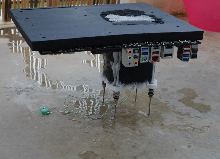 On the motherboard Asus Maximus VIII Extreme in this case have been installed tanks of liquid nitrogen to cool the Core i7-6700K processor and RAM. The video card GeForce GTX 980 Asus Ti Matrix was overclocked to 1520/8600 MHz.