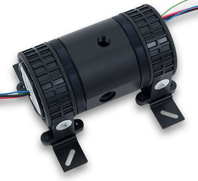 Slovenian company EK Water Blocks offered high reliability new units pump EK-XTOP Revo Dual D5 PWM Serial, layout feature is the presence of two motors operating in series.