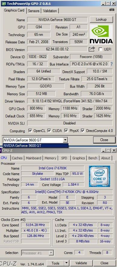 This next weekend Traktor, as promised, conducted experiments with overclocking the GeForce 9600 GT.  The card was coupled with processor Core i7-6700K overclocked using water blocks.