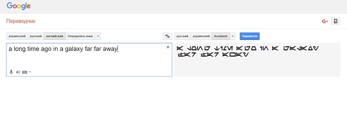 In  Google Translate is now available language alphabet Aurebesh (Aurebesh).  It is used as a universal language in the universe of "Star Wars."  The name is derived from the first letters - "aurek» (Aurek) and "Besh» (Besh).