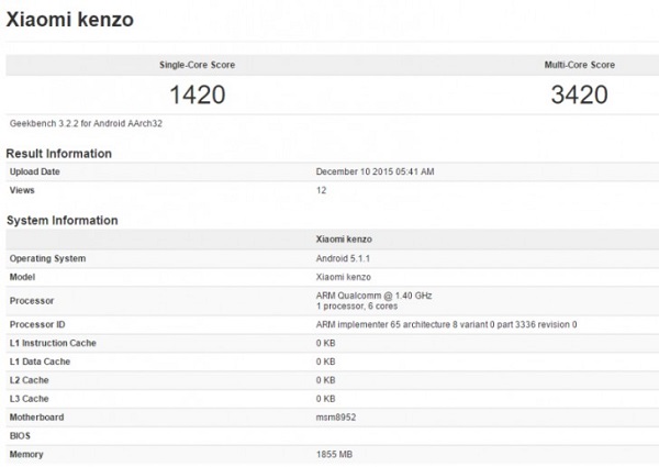 Note that Kenzo is equipped with 2 GB of RAM, and runs on Android 5.1.1 Lollipop. Most likely this device is a smartphone Redmi 3 because it has the characteristics of an average level, Related Products :