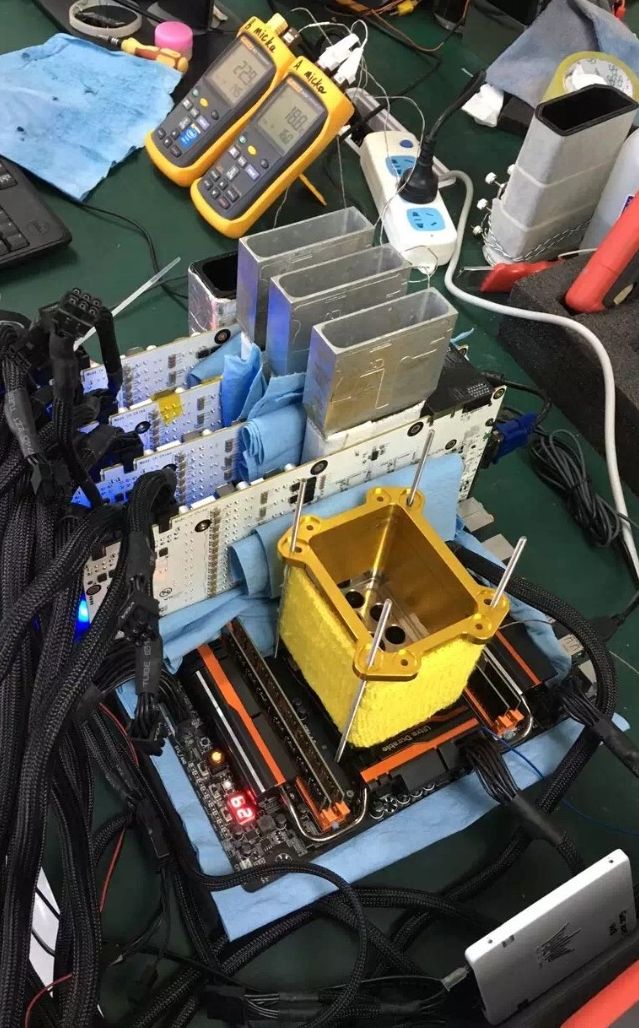 Extreme overclock multiple graphics cards under liquid nitrogen - a special art, and the greater the number of simultaneously working graphics card, the harder they squeeze the maximum performance without endangering the stability of the operation. Chinese enthusiast Laoshu1919 recently finished third in the absolute world ranking 3DMark Fire Strike with a score of 44,258 points, breaking up four of GeForce GTX 980 Ti to the frequencies 1725/8500 MHz.