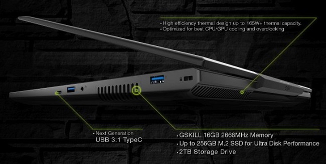 EVGA SC17 is equipped with 17.3-inch display with a resolution of 4K (3840 x 2160 pixels) and support for technology G-Sync. EVGA says that this is the world's first laptop with the screen. As a base of laptop used 4-core processor Intel Core i7 6820HK, the base rate is equal to 2.7 GHz, and the maximum is increased from 3.6 to 3.8 GHz. The frequency of the GPU NVIDIA GeForce GTX 980M is increased to 1200 MHz, and 16 GB of RAM G.SKill DDR4-2133 to 2666 MHz.