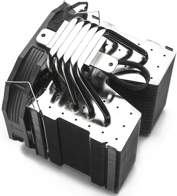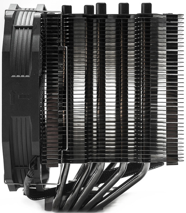 Radiator Fortis 3 HE1425 Malik Customs Edition is made of 38 aluminum plates, through which the five 6 mm copper heat pipes with direct contact. Â For air cooling radiator meets 140mm fan SilentiumPC Sigma Pro 140, thespeed of which varies between 500-1400 r / min, the noise level is 8 to 22 dB, and the air flow reaches 133.6 m³ / hr. Â The cooling system is capable of removing up to 220 watts of heat.