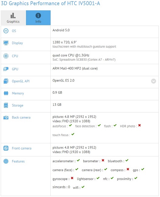 In a short time, HTC will release a tablet under the brand Desire.  Recently, in GFXBench appeared tablet, codenamed HTC IV5001-A, which, according to network sources, will be released under the name of Desire T7.