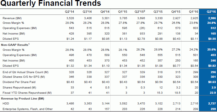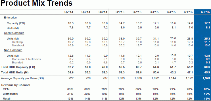 Seagate is not so concerned with the measurement of market share and therefore confined to the publication of absolute figures. In the manufacturer calendar,    the first of January this year has completed the second quarter  2016 fiscal year, so the signature in the tables should not mislead you.
