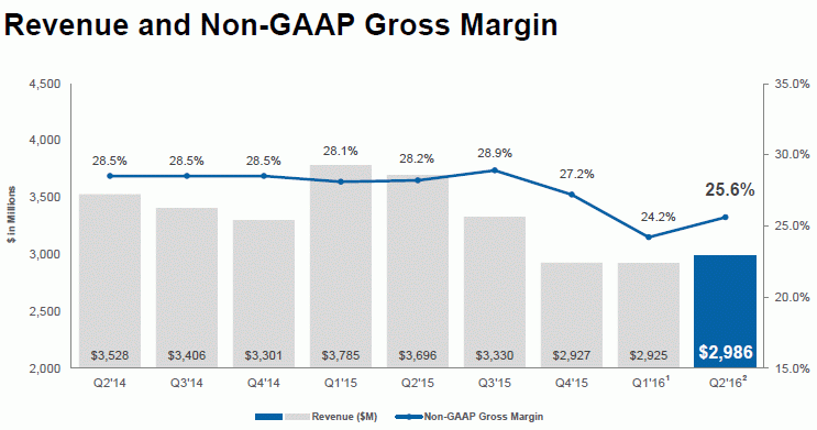 Seagate Revenue, which in the past quarter was $ 2.986 billion., Also shows a downward trend as  profit rate  . However, in the last quarter there was a slight "bounce" up. As a competitor, Seagate is trying to optimize costs in order to increase profitability. By the way, the head of Seagate criticized the deal for Western Digital to purchase  SanDisk. According to him, the financing scheme of the transaction at the expense of borrowed funds involves too much debt servicing costs, and he prefers that Seagate in the area of solid-state drives to work with multiple partners, as well as to invest in the development of related decisions, but not to buy the assets of other market participants. By the way, from the sale of solid-state drives, and other enterprise-class Seagate products in the last quarter it has gained no more than $ 259 million. - Less than 10% of total revenue for the period.