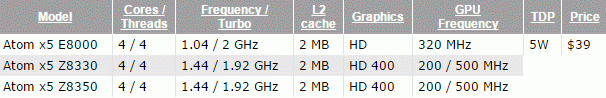 TO THE RANGE OF PROCESSORS INTEL ATOM X5 ADDED THREE NEW MODELS