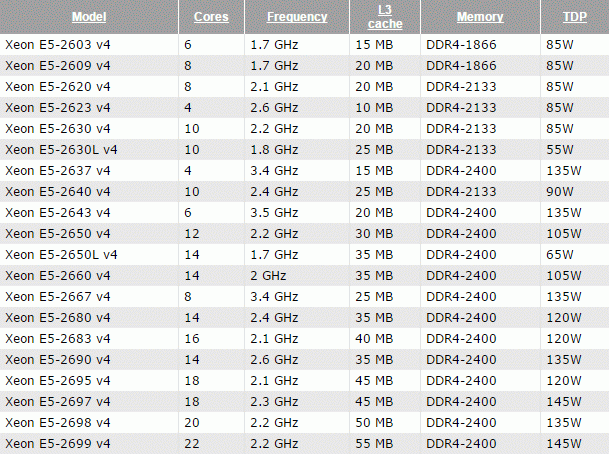 Colleagues managed to find mention of the characteristics of an expanded range Broadwell-EP processors in the documentation for the server equipment Lenovo.