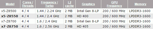 CPU World has once again reported the release of new generation Cherry Trail processors, manufactured on 14-nm technology. Two new processors are based on the new core revision, which has improved frequency and capacity of the graphics system deprived of some previously identified defects.