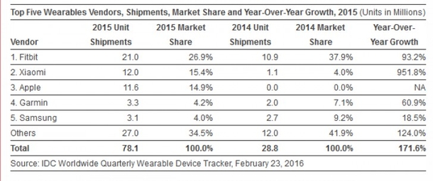 As for Apple, it is one of the most efficient companies in the world to market wearable electronics. The company did not disclose the exact number sold Apple Watch, even in their financial reports, but, according to IDC estimates, in the fourth quarter 2015 deliveries amounted to 4.1 million copies. Apple and Xiaomi on the results of the last quarter global market took second and third place respectively, while the first place belongs to the Fitbit. A total for all of last year Fitbit devices sales was 20 million copies.