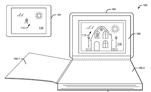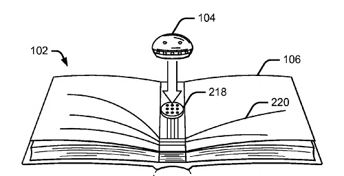 In addition to the interactive book, Google patented a system that will combine a book and a tablet or smartphone.  Each page of the book is "an additional page," turns away vertically upwards.  This "page" is designed to accommodate a tablet or smartphone, the screen of which there are various images corresponding to the text and complementing it.