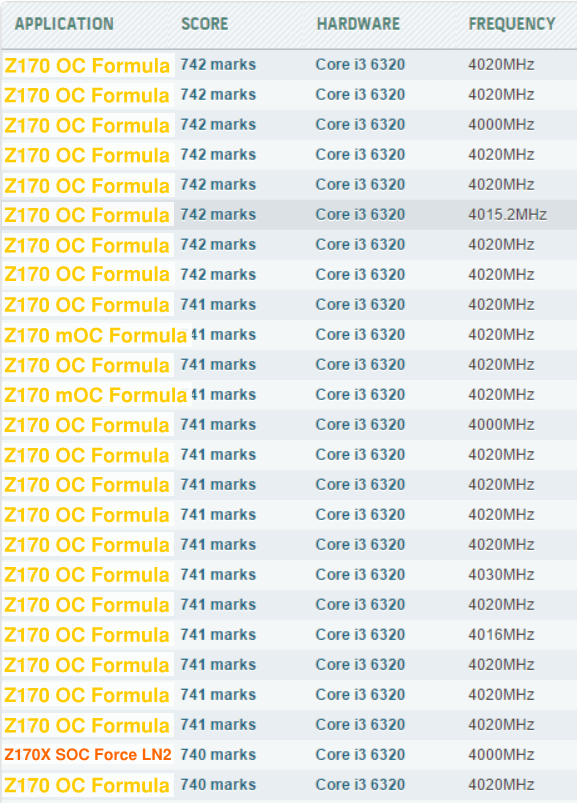 The motherboard ASRock Z170 OC Formula enhance their talent base oscillator frequency .  As you can remember, unlocked BIOS version deprived of the opportunity to use  processor extension AVX.  For this reason, overclockers compete for a long time in XTU with  officially approved BIOS, but try to get the highest possible frequency of the processor in low-resource settings.