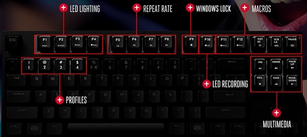 Both keyboards are equipped with switches Cherry MX (available version with Cherry MX Brown, Blue and Red).  Response time MasterKeys Pro Keyboard is 1 ms.  More new products are equipped with a custom colored LED backlight with 16.7 million colors, which supports several modes of operation.
