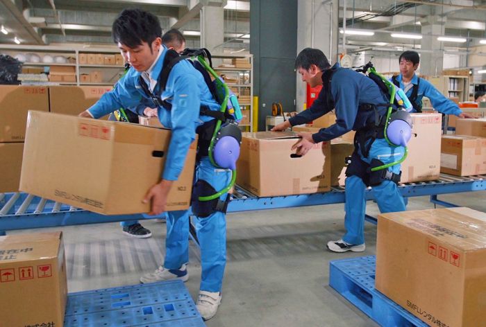 Firstly, in the factories, are the result of lifting and moving heavy objects, so-called exoskeletons to help increase the carrying capacity of man without any harm to his health.  By reducing the load on the lumbar back office to the equivalent of 15 kg, similar to exoskeleton can operate without recharging for eight hours.