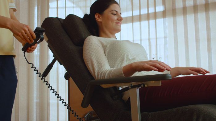 Transformed into a wheelchair medical Resyone bed allow to care for the sick, not able to move independently.  Half the bed in this case, squats and bends so that the patient need only to move to this side of the bed, and the preparation for the further movement of the wheelchair actuators will hold their own.  This product has already received a certificate of compliance with ISO 13482 .