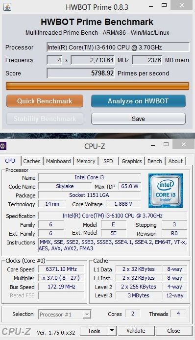The Greek overclocker FireKillerGR scored in HWBot Prime record for dual-core processors 5798.92 points, overclocking the Core i3-6100 up to 6371 MHz with the help of liquid nitrogen.