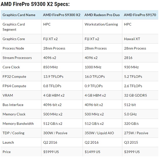 FirePro S9300 X2 significantly more Radeon Pro Duo - $ 6,000 vs. $ 1,500.