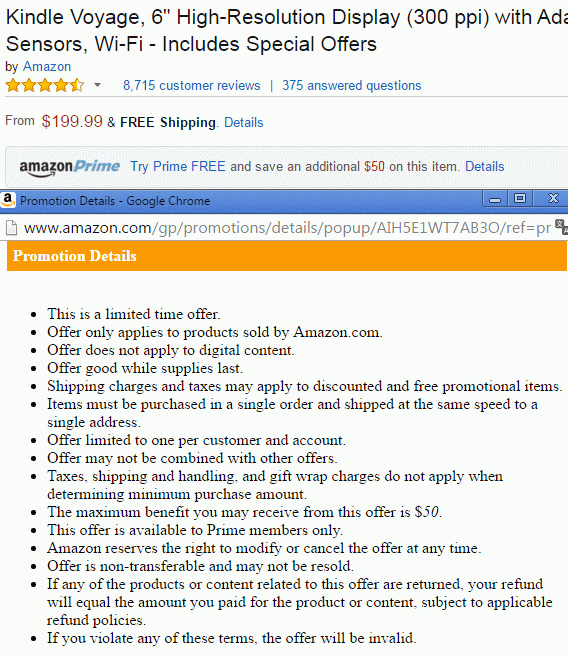 Symbolically, the program for Prime subscribers current flagship in the face of Kindle Voyage has become cheaper once a quarter - in the framework of the special action unit can be purchased for $ 150 instead of $ 200. The basic version Kindle with a six-inch display and advertising banners Prime subscribers can be purchased for only $ 50, other buyers have to add another $ 30. Related Products :