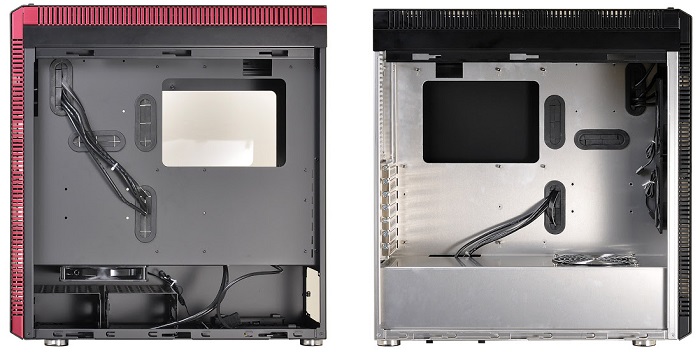 The case has five 3.5-inch bays for hard disks and one for mounting 2.5-inch drive.  The power supply and hard drives to the basket hidden special casing, and for the right-side wall there is enough space for cabling and mounting two drives (one 2.5- and 3.5-inch).