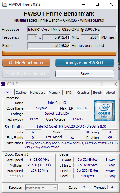 At a frequency of 6405 MHz Core i3-6320 processor is ranked first in HWBot Prime